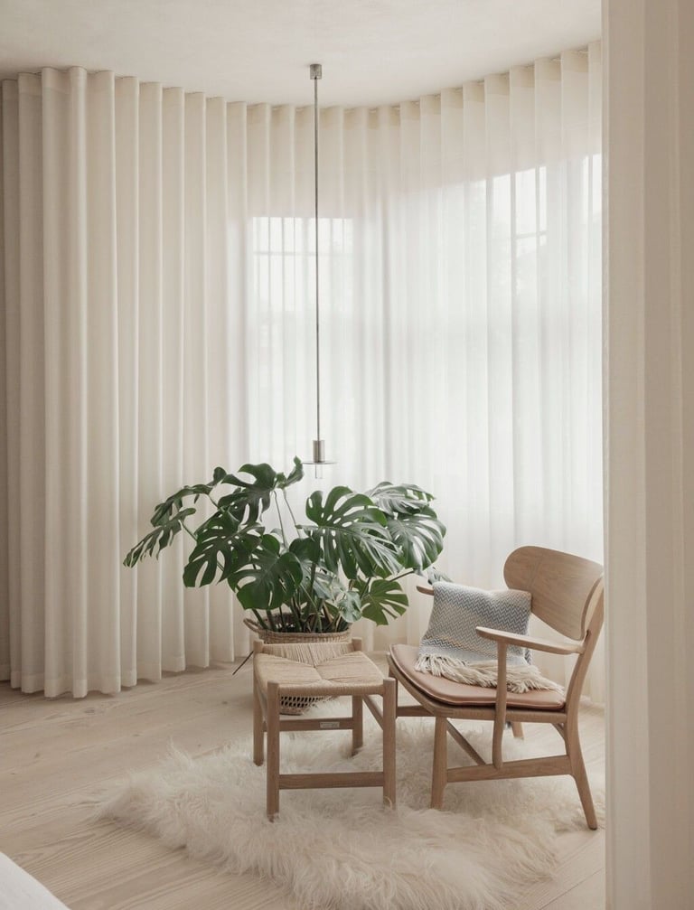 Ceiling-to-Floor Draping: Enhances room height and creates a hotel-like luxury feel.